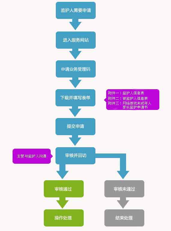 "网络游戏未成年人家长监护工程"是一项由中华人民共和国文化部指导,网络游戏企业共同发起并参与实施,旨在加强 家长对未成年人参与网络游戏的监护,引导未成年人健康、绿色参与网络游戏,和谐家庭关系的社会性公益行动。"工程"提供了一种切实可行的方法,一种家长实 施监控的渠道,使家长纠正部分未成年子女沉迷游戏的行为成为可能。