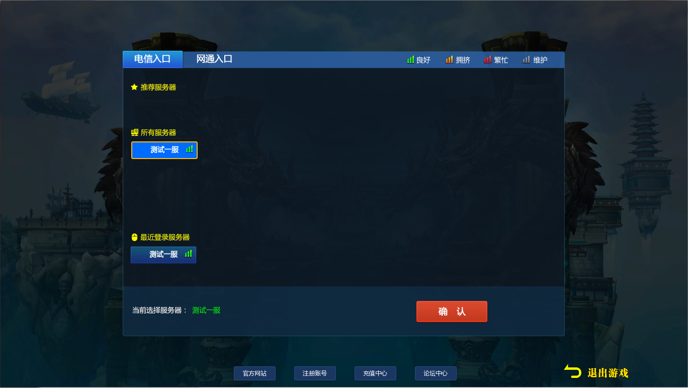 玩家可以点击屏幕上的“创建”、“删除”、“确认”按钮来执行创建新角色、删除已有角色、确认选定角色进入游戏的三个功能。每个服务器中创建角色的上限为4个。 点击“创建“按钮实现新角色创建功能。